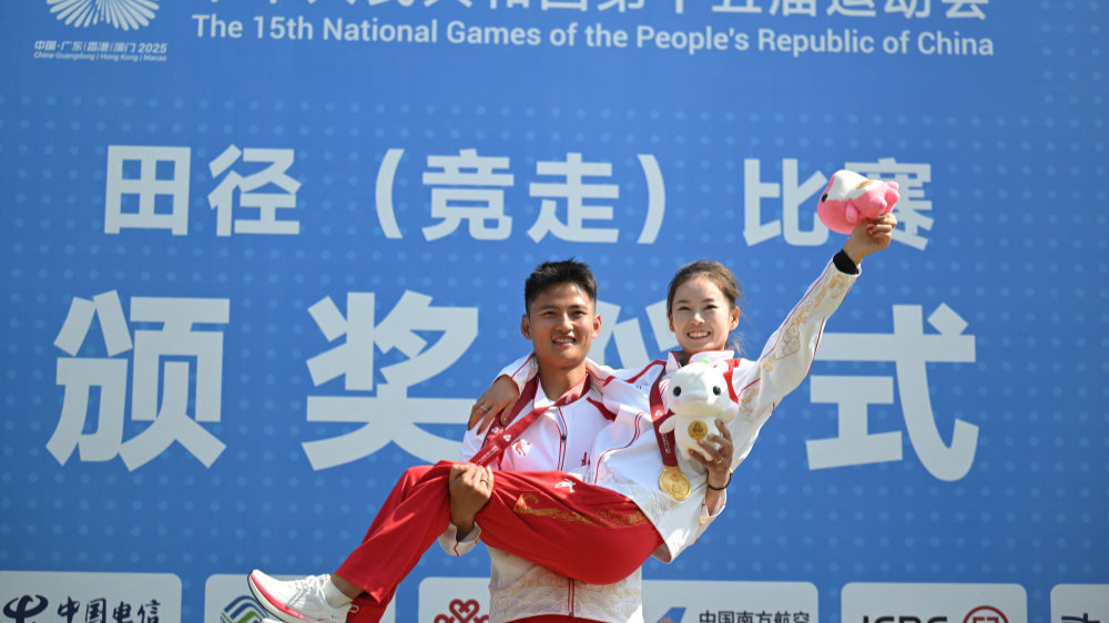 魏新猛一个“公主抱”,冠军杨家玉搂着他的肩膀,洋溢着幸福。这是她连续第三次斩获这个项目的全运会冠军。[查看详细]