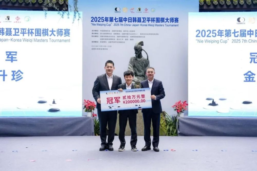 新华社成都10月26日电(记者陈地)26日,为期两天的2025年第七届中日韩聂卫平杯围棋大师赛在成都杜甫草堂落幕,韩国棋手金升珍七段在决赛中执黑3/4子战胜中国的胡耀宇八段。