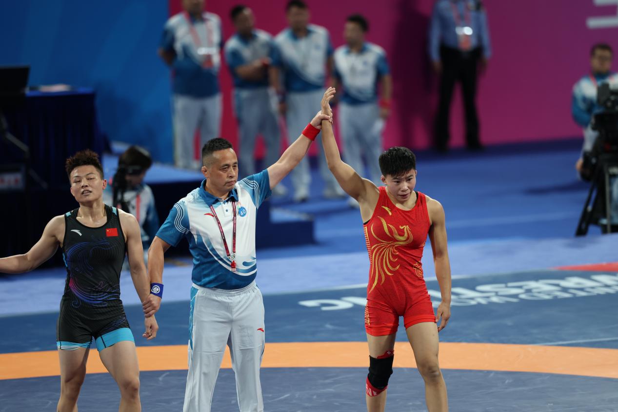 这位来自江苏泗阳的年轻选手,与摔跤的缘分始于2017年。当时11岁的张金进入宿迁市体育运动学校,第一次接触摔跤便展现出过人天赋。每天6小时的体能训练、上千次的技术动作重复,让她在日复一日的坚持中快速成长,2024 年成功入选江苏省女子摔跤队,开启专业运动员生涯。近两年,张金的成长速度更是令人瞩目:2023年,她在东亚青年运动会摘银、全国学生(青年)运动会夺金,初露锋芒;2024年,她不仅拿下全国锦标赛冠军,更在金砖国家运动会、世界摔跤锦标赛等国际赛场崭露头角,收获亚军荣誉;今年5月,她再度卫冕全国锦标赛冠军,如今又在全运会赛场战胜卫冕冠军,用一枚沉甸甸的金牌,证明了自己的实力。