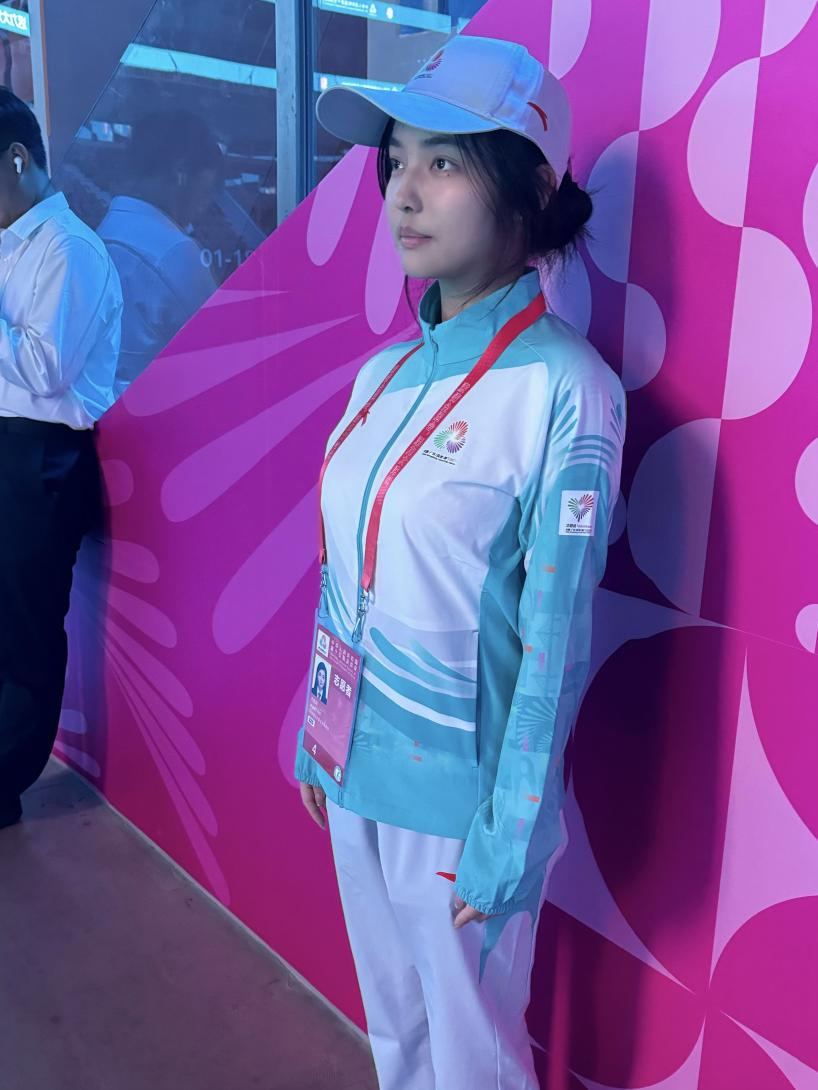这份因全运会而生的新鲜感与自豪感,在来自茂名司法鉴江职业学校的志愿者李锦裕身上同样清晰可见。作为安保团队的一员,他已在场馆服务了一个多月。“这是我第一次参与全国性赛事的安保工作,一想到全运会的顺利举办有我一份小小的助力,就觉得很光荣。”