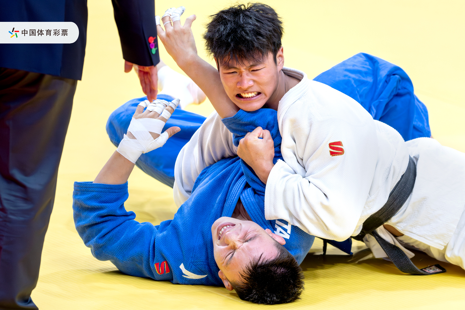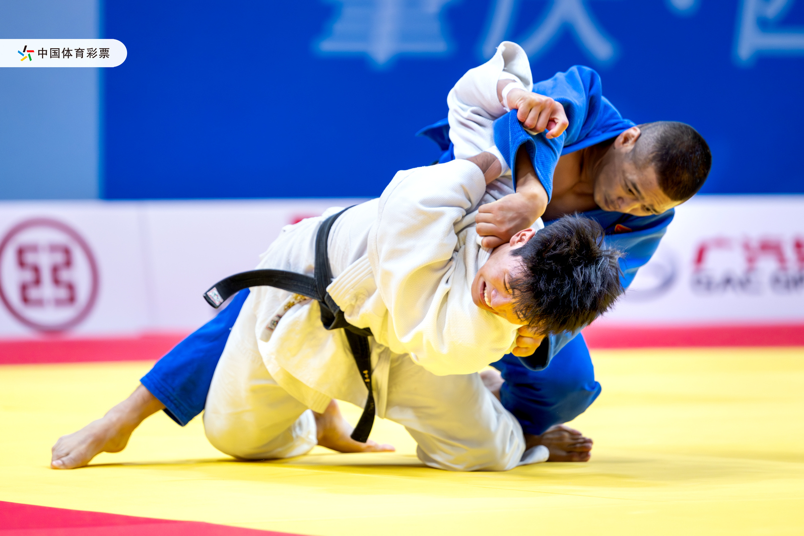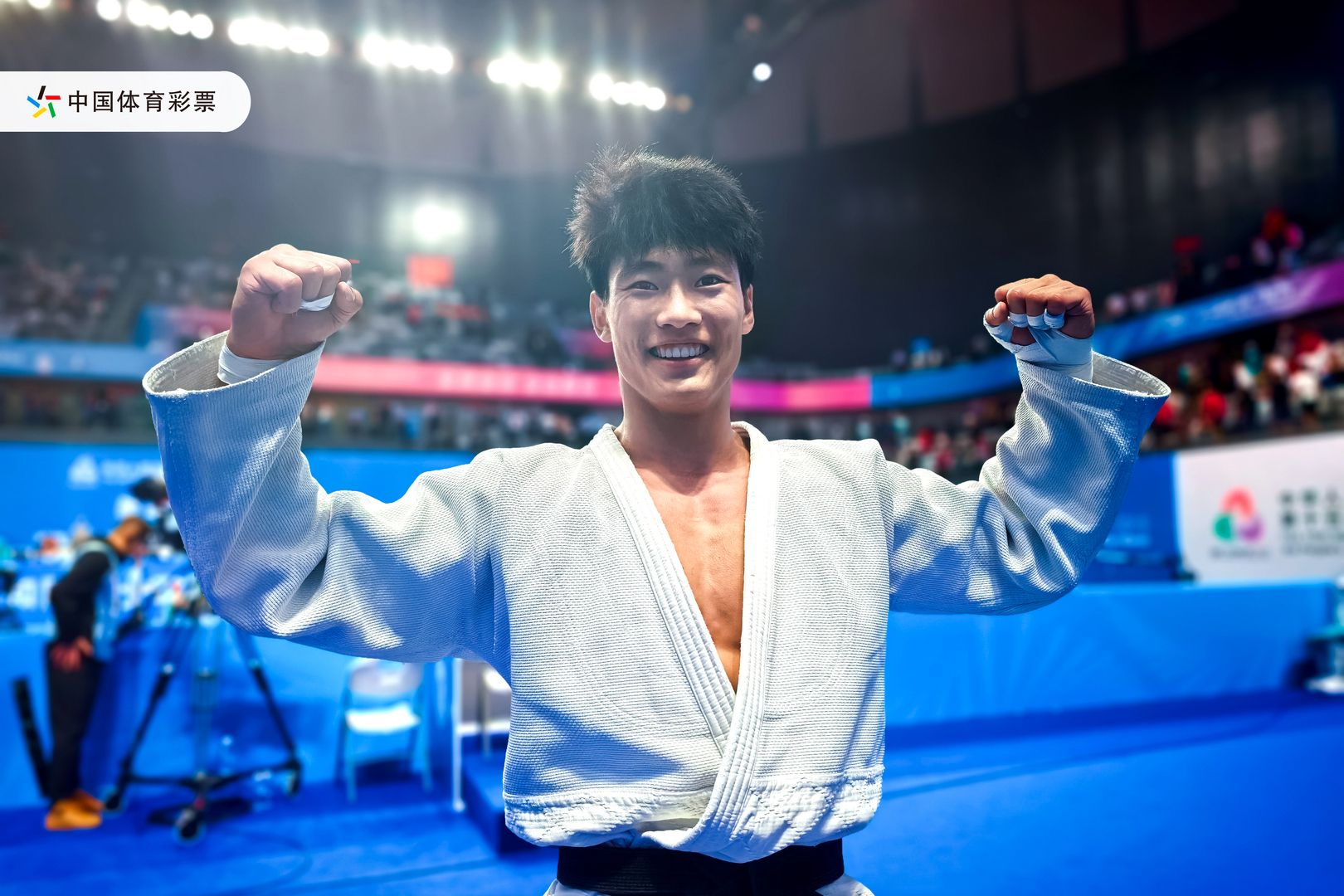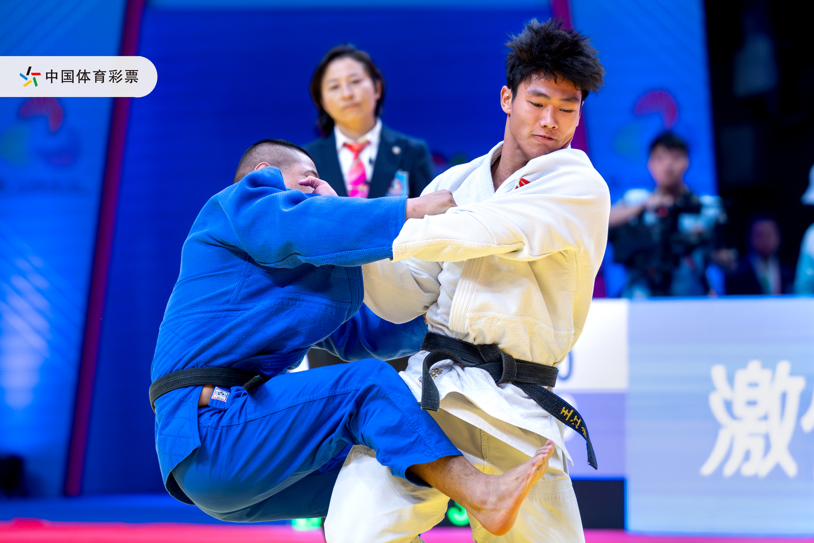 11月11日,第十五届全运会柔道比赛在广东省肇庆市四会市体育中心体育馆举行。江苏运动员王江南战胜福建队赛音吉日嘎拉,夺得男子-81公斤级冠军。