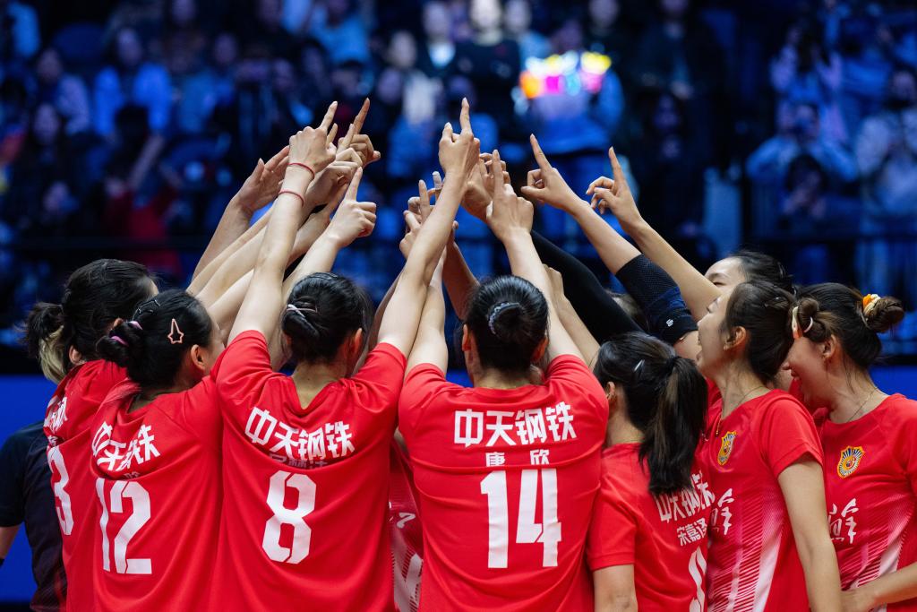 11月19日,江苏队球员庆祝胜利。新华社发(张金加摄)