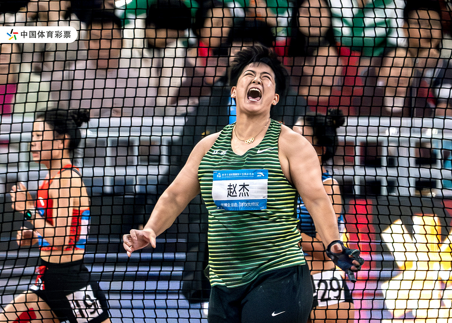 11月20日,第十五届全运会田径比赛在广东省奥体中心体育场举行,江苏运动员赵杰以77米44的成绩获得女子链球冠军。