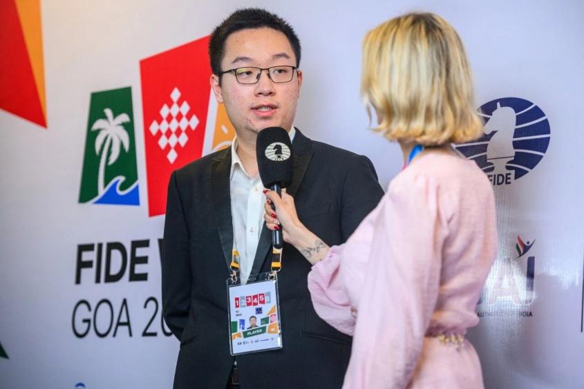 11月24日,冠亚军决赛首轮慢棋中,韦奕执黑迎战辛达洛夫。两人此前在杭州亚运会和去年超快棋世锦赛有过快棋和超快棋交手,韦奕两胜对手,此番是两人首次慢棋过招。开局双方落子如飞,随后经过一系列精巧的战术交换后,于第50回合偃旗息鼓,各得半分。第二轮慢棋双方交换先后手再战,30回合一到,执黑的辛达洛夫便提议和棋,韦奕爽快接受。双方不得不通过快棋加赛,决出优胜者。这也是世界杯赛历史上,第六次通过快棋加赛决出冠亚军。