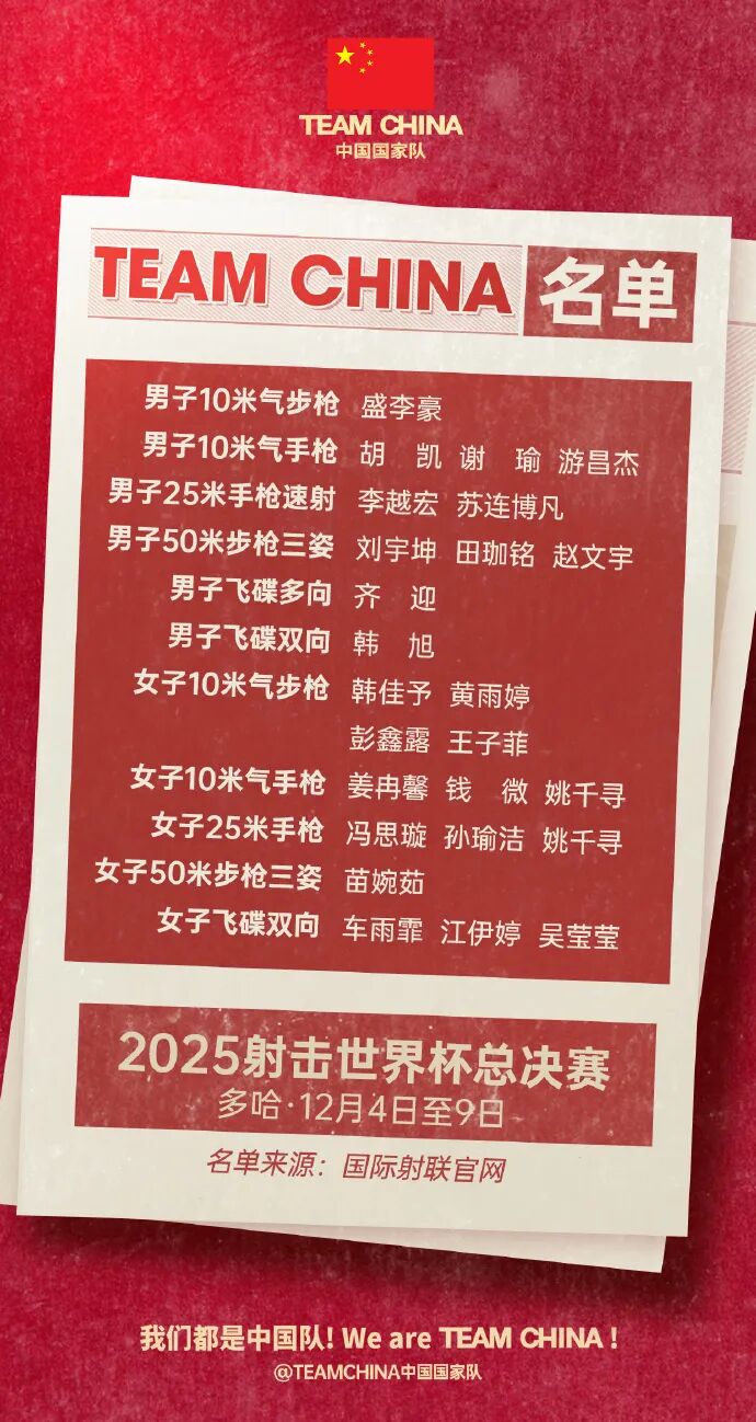 在11月中旬举行的射击世锦赛结束后,国家射击队进入冬训阶段。本次射击世界杯总决赛的参赛队员将于12月4日至9日赴多哈参赛,这也将是他们今年最后一场大赛。