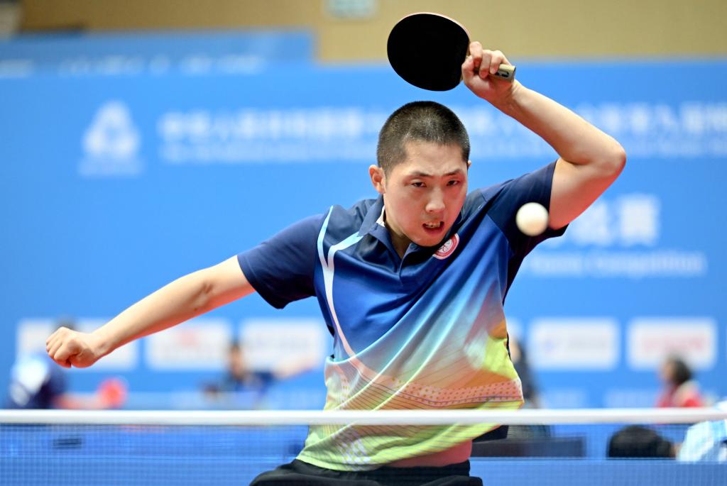 12月6日,陕西队选手王瑜在男子单打30岁及以上组比赛中。当日,全国第十二届残疾人运动会暨第九届特殊奥林匹克运动会特奥乒乓球项目首日比赛在香港举行。新华社发(胡潇 摄)