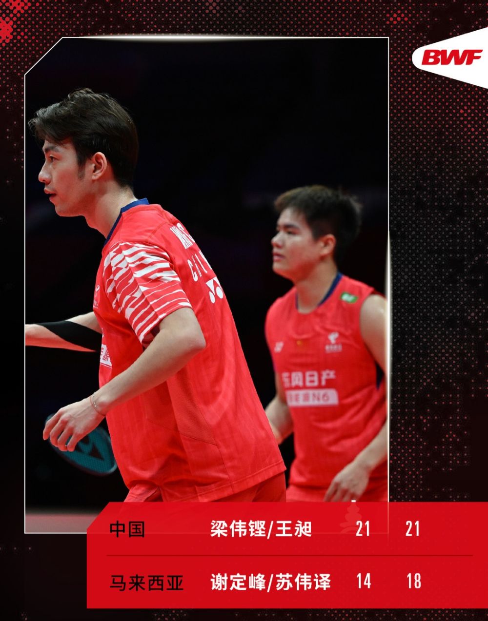 首轮输球的国羽男双“独苗”梁伟铿/王昶2:0击败2号种子、马来西亚组合谢定峰/苏伟译,最后一轮取胜即晋级。