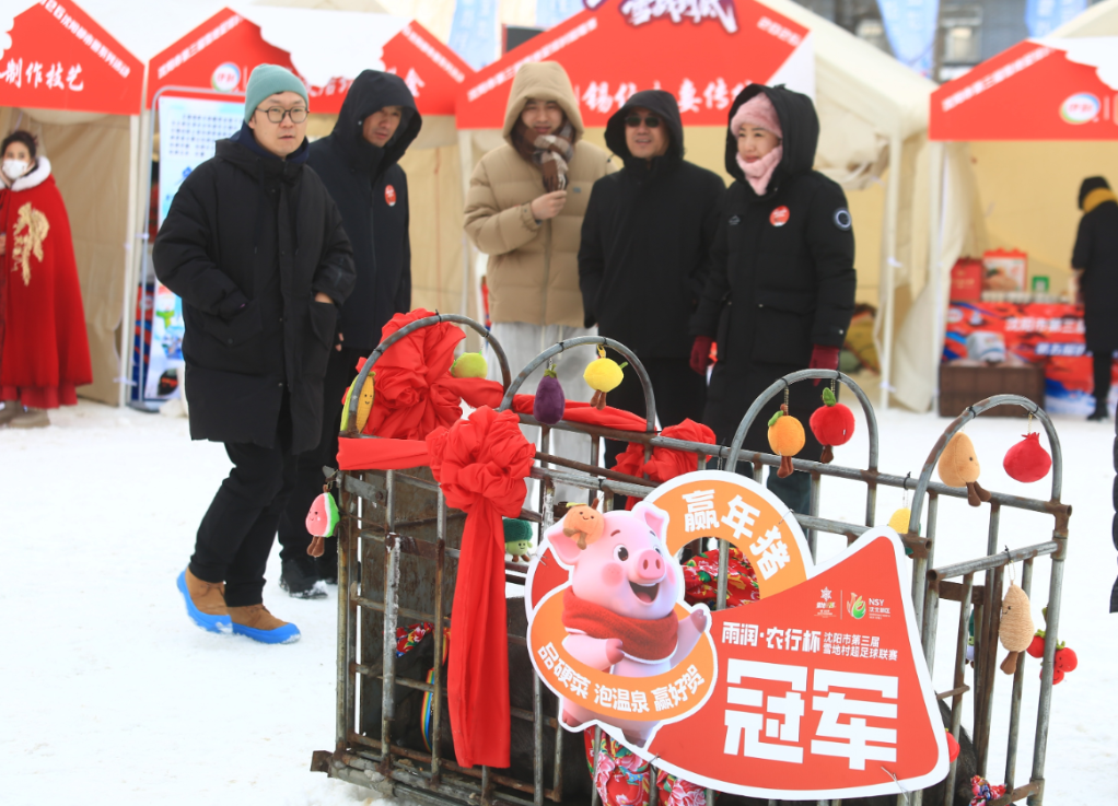 第三届雪地足球“村超”联赛启动仪式在沈北新区稻梦小镇举行,后屯六碗席队, 黄家稻花香队、立新村辣白菜队、马刚“蚕宝宝”队……村书记、种田大户、村医齐上阵,为冬日的热闹,也为赢球的彩头——寓意丰收与吉祥的“大年猪”。