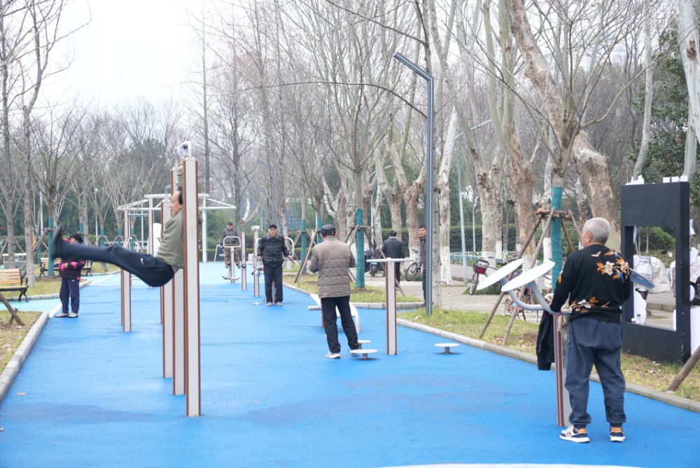 除了亮眼的主题标识,园区的硬件设施同样颇具亮点,全面升级为集智能科技与全龄段健身理念于一体的综合性运动场所。足球场上的奔跑身影、篮球场上的激烈对抗、匹克球场上的挥拍瞬间,共同奏响全民健身的活力乐章。升级后的2.0版本健身园融入了智能二代健身路径器材、智慧健身亭和酷音单车,同步推进智慧服务升级,适老康养区、力量训练区、儿童活动区按需划分,满足不同人群健身需求,让市民在运动中切实感受科技带来的便捷。
