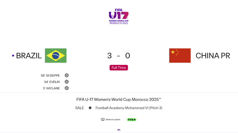 易边再战,博尼法西奥在第54分钟远射破门,将比分改写为2:0,随后她又在第58分钟助攻伊塞佩门前推射得手,为巴西队锁定胜局。