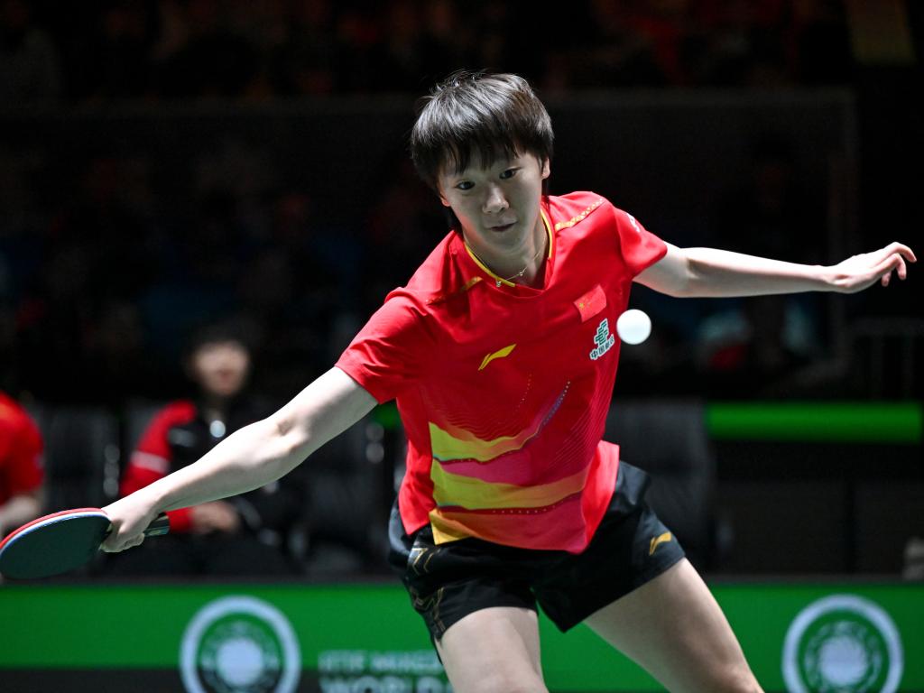12月2日,中国队选手王曼昱在女单比赛中回球。新华社记者 胥冰洁 摄