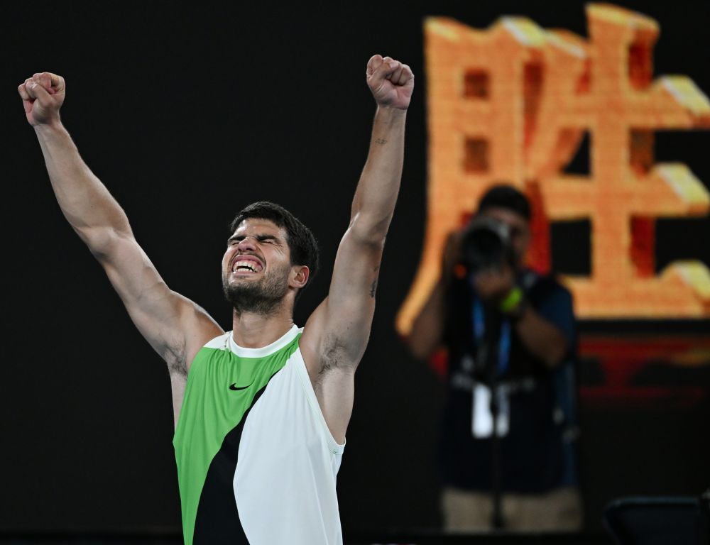 1月27日,阿尔卡拉斯庆祝胜利。新华社发(王申摄)