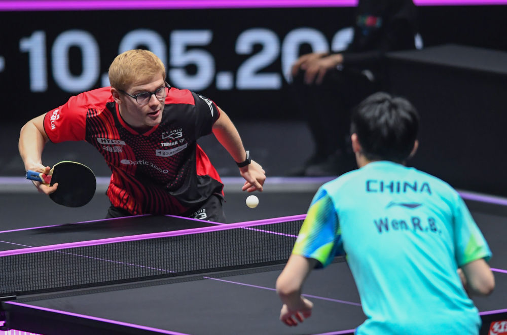 男单决赛随后进行,同为19岁的温瑞博对战小勒布伦。温瑞博在下午的半决赛以4:2击败张本智和,两人还打出了21:19的超高比分局,晚间比赛对温瑞博的体能是个考验。开局,小勒布伦先以11:5、11:8连拿两局。虽然温瑞博以11:9拿下第三局,但小勒布伦发挥更稳定,他在第四、五局通过发球和大角度调动获得优势,以11:7、13:11再下两城,捧起冠军奖杯。