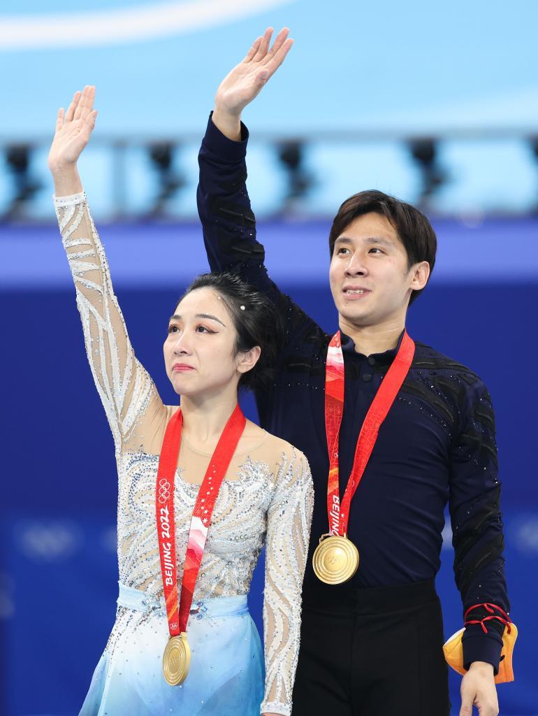 2022年2月19日,北京2022年冬奥会花样滑冰双人滑自由滑比赛在首都体育馆举行,中国选手隋文静/韩聪夺得双人滑冠军。新华社记者 兰红光 摄