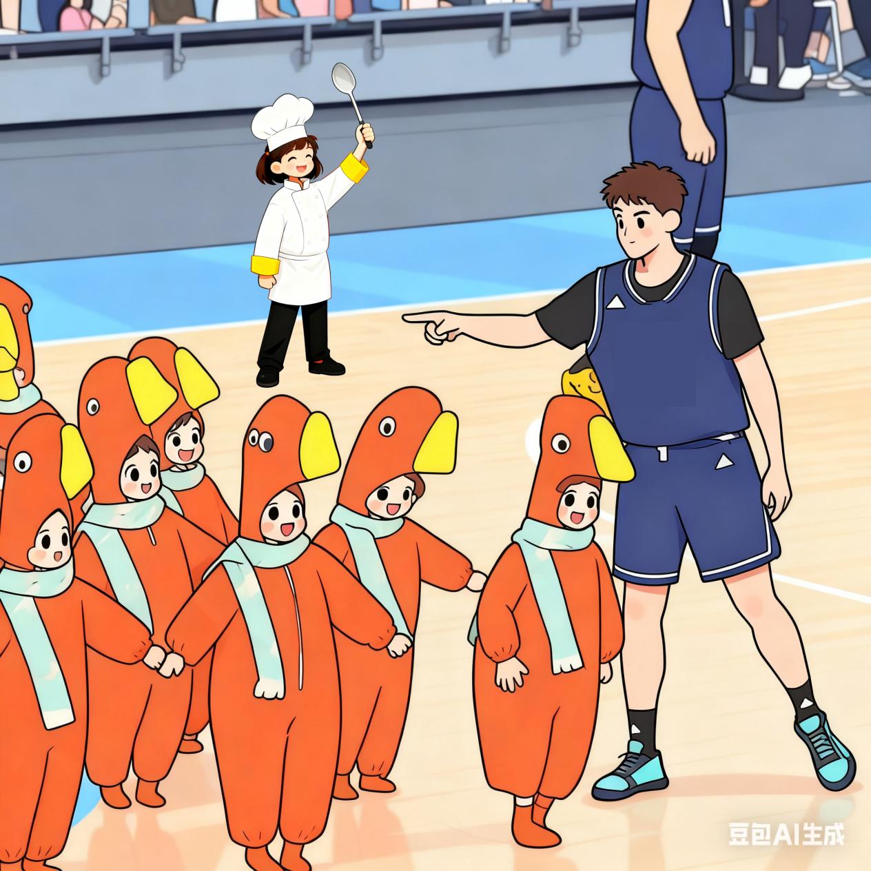 十五运会男篮赛场惊现“粤式萌趣名场面”!一群幼儿园娃化身“行走的东莞烧鹅”,在童谣里蹦跳起舞,还有位小厨师举着勺子当“气氛组组长”,把中场秀变成萌系狂欢。广东男篮队长赵睿都忍不住指着“烧鹅崽”露出姨父笑。