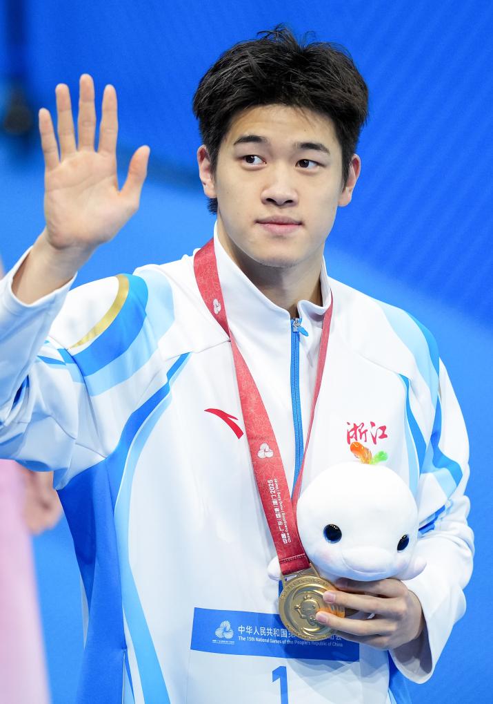 48秒01,男子100米自由泳金牌,这是巴黎奥运会冠军、该项目世界纪录保持者潘展乐,在第十五届全国运动会上交出的答卷。这枚金牌也是他在这届赛事中收获的唯一一枚个人项目金牌。