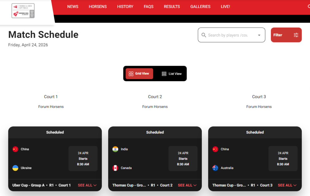 根据赛程安排,在尤伯杯比赛中,中国队首场将对阵乌克兰队;而在汤姆斯杯比赛中,中国队将迎战澳大利亚队。这两场A组的比赛都将在当地时间4月24日上午8点30分开始。