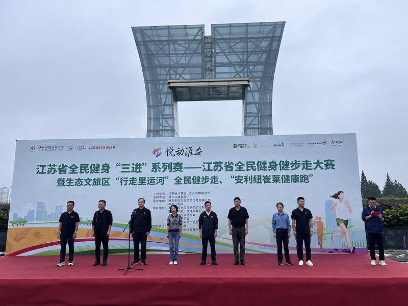 本次活动由江苏省体育局、江苏省体育总会主办,淮安市体育局支持,淮安生态文化旅游区社会事业局、中国江苏网承办,淮安市淮安区疾病预防控制中心、安利(中国)日用品有限公司、淮安市长跑运动协会、淮安市营养协会、淮安市全域文体产业发展有限公司协办,共吸引1892名健身爱好者与工作人员参与。江苏省体育总会副秘书长徐志胜,淮安市生态文旅区党工委委员、管理办副主任张大伟,淮安市体育局副局长蒋兆红,市体育局群体处处长王旭红,市卫健委健康促进处处长王忠,生态文旅区社会事业局党委书记、局长严继兵,市长跑运动协会会长张爱昌,安利(中国)日用品有限公司淮安分公司高级主任雍海涛出席活动。