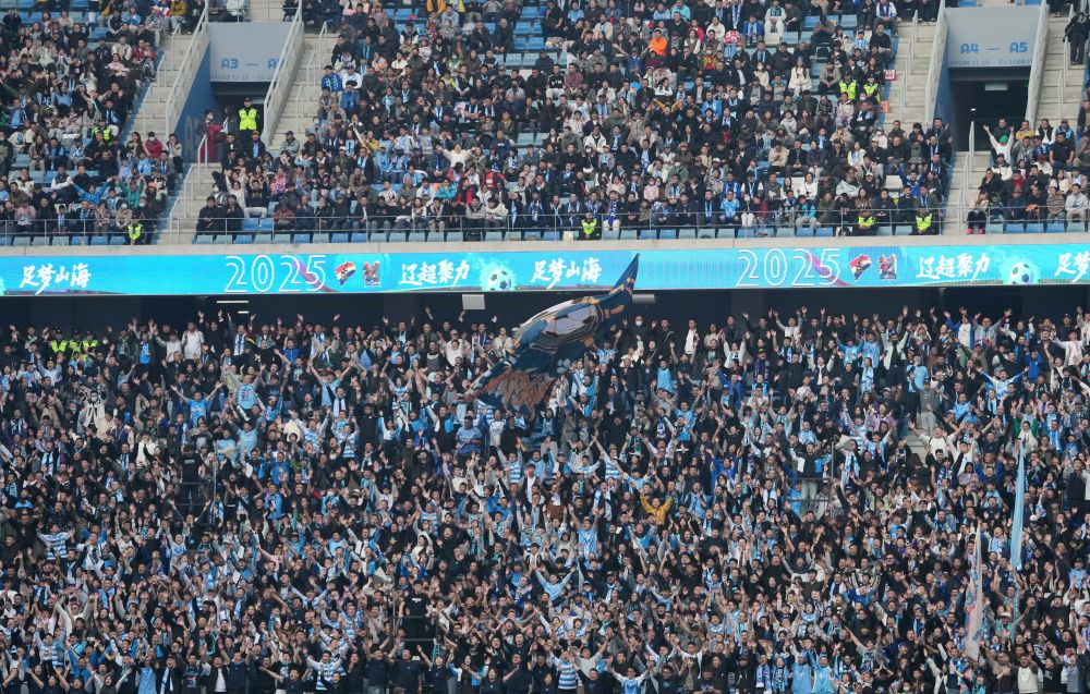 2025年11月15日,球迷在第二届辽宁城市足球超级擂台赛总决赛中加油助威。新华社记者 李钢 摄