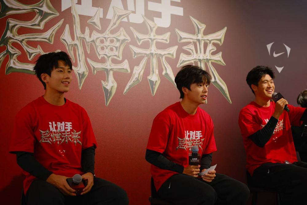 当天活动的全称为“让对手忌惮未来”中国之队男足U23队员门店分享会。活动现场,三名队员都身穿印有这些字样的T恤亮相。主办方介绍,作为中国足协装备合作伙伴,耐克提出“让对手忌惮未来”的口号,并向三位球员赠送了三双侧面印有该口号的定制球鞋,寄望他们持续成长、不断突破,在未来为中国足球贡献更多力量。