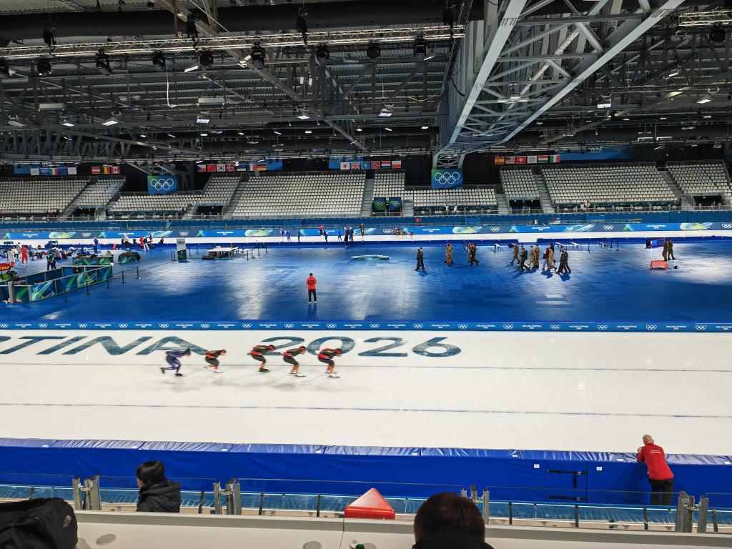 米兰速滑馆是一座在米兰国际展览中心内临时搭建的场馆,内部铺设标准400米冰道,并配备训练场地和临时看台,可容纳约6000名观众。德威特表示,虽然是临时设施,但冰场质量不错。