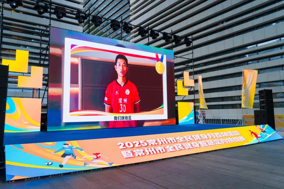 今年5月起,江苏省城市足球联赛战火燃起,足球热情席卷全国。本次全民健身月活动也收到了“苏超”常州队球员的专属祝福,一句句真挚的话语点燃了现场的运动热情,也将苏超赛场的拼搏精神传递到每个人心中。